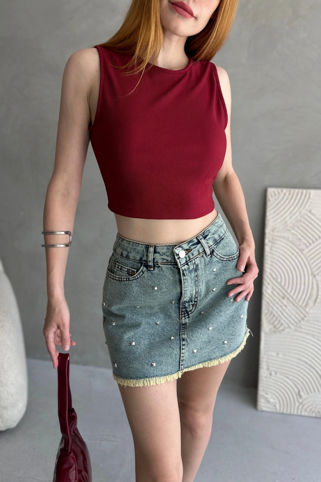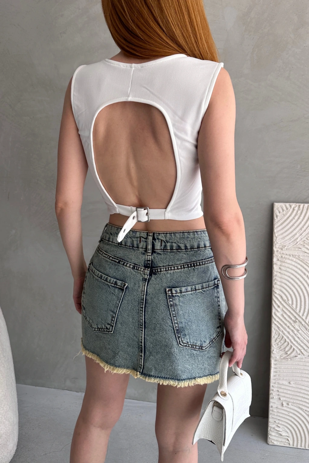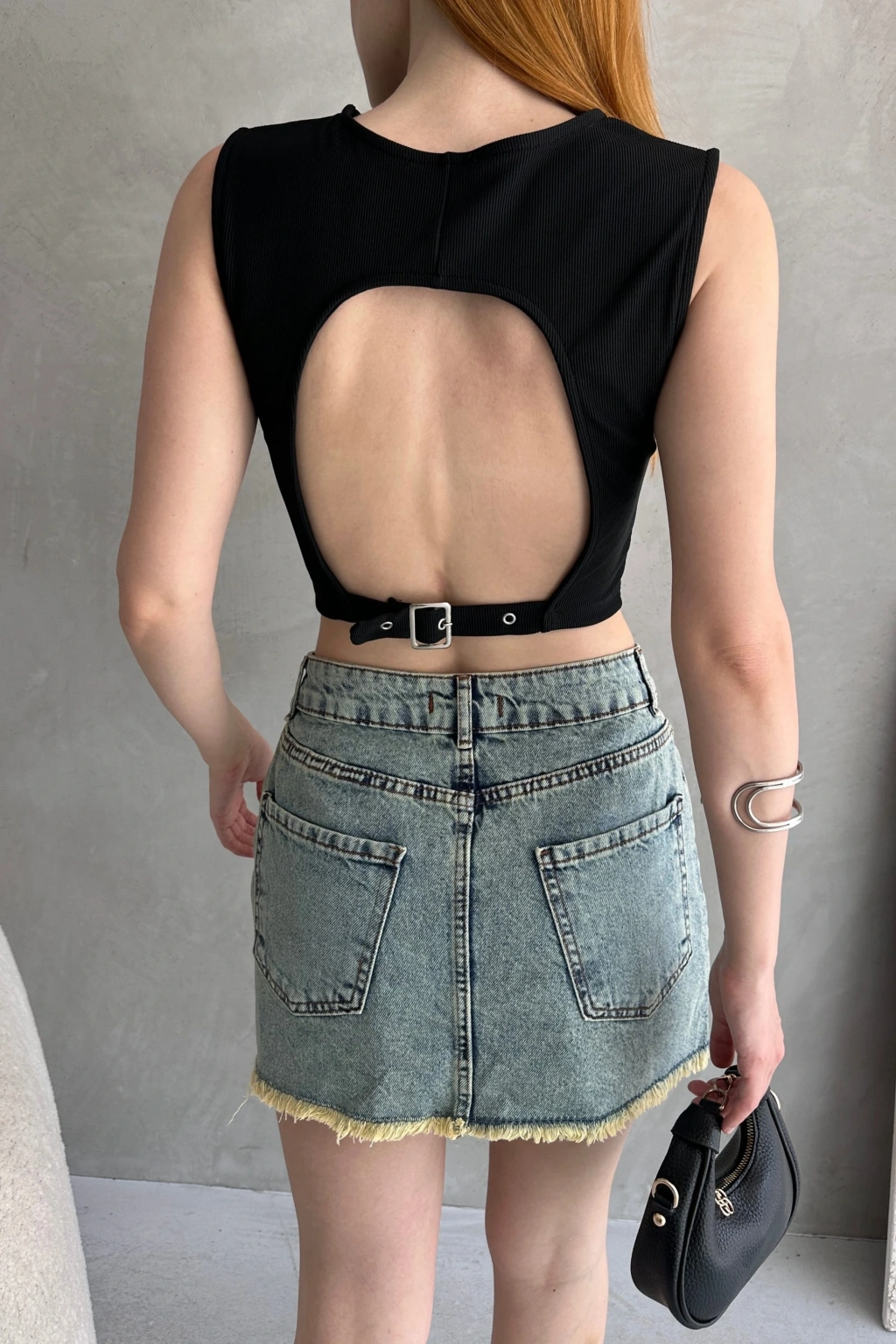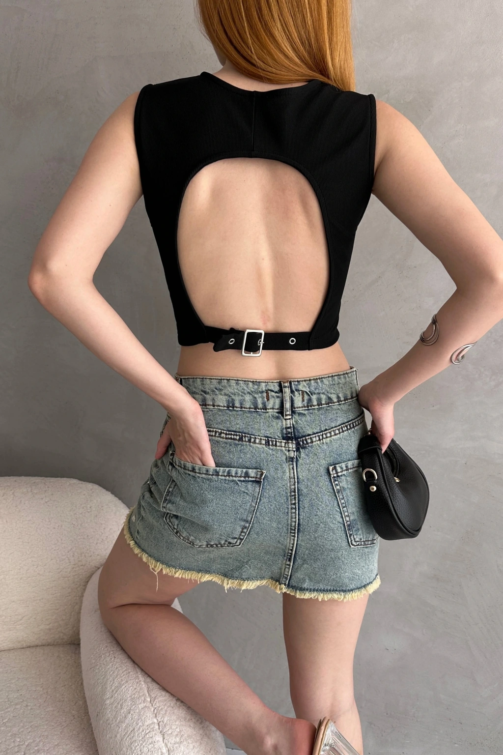 Ürün Adı :Sırtı Kemer Detaylı Kaşkorse Crop Bluz