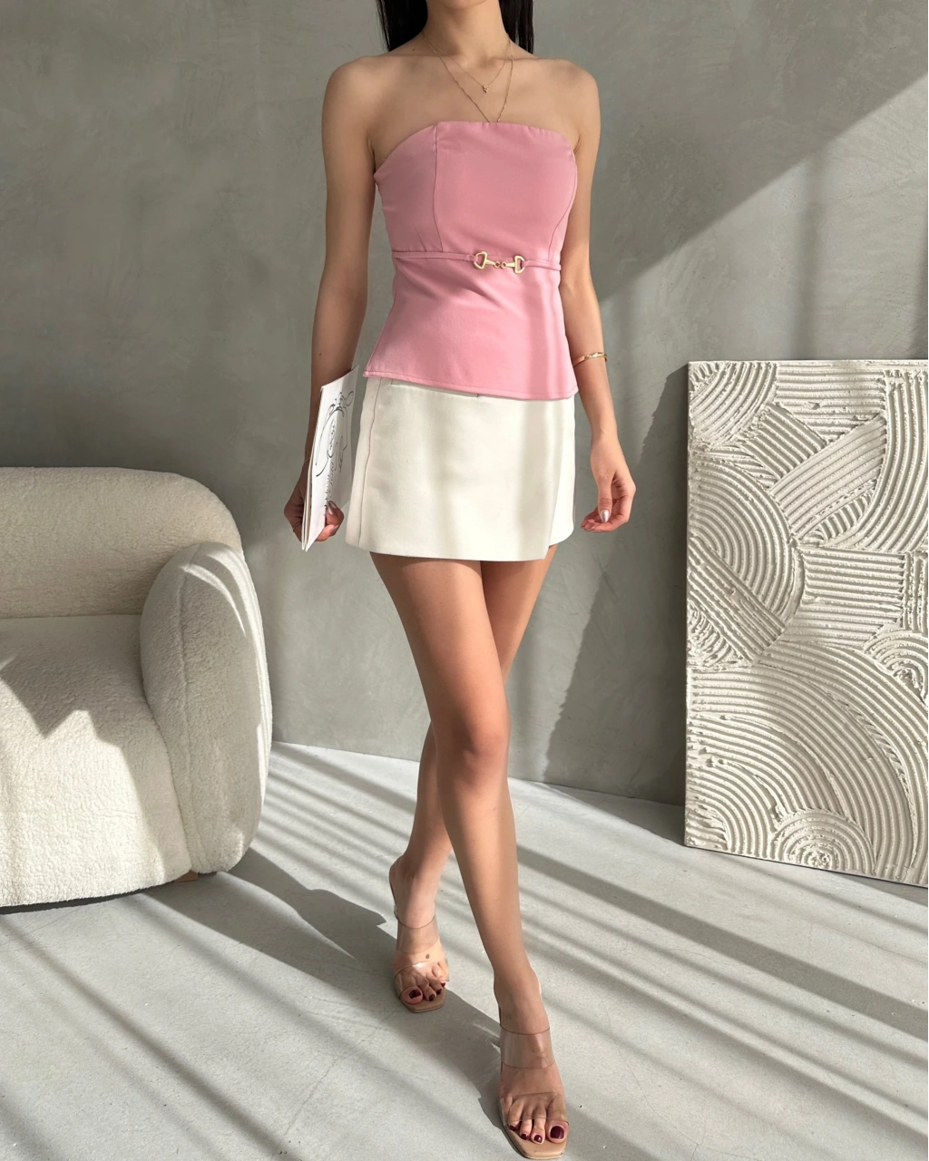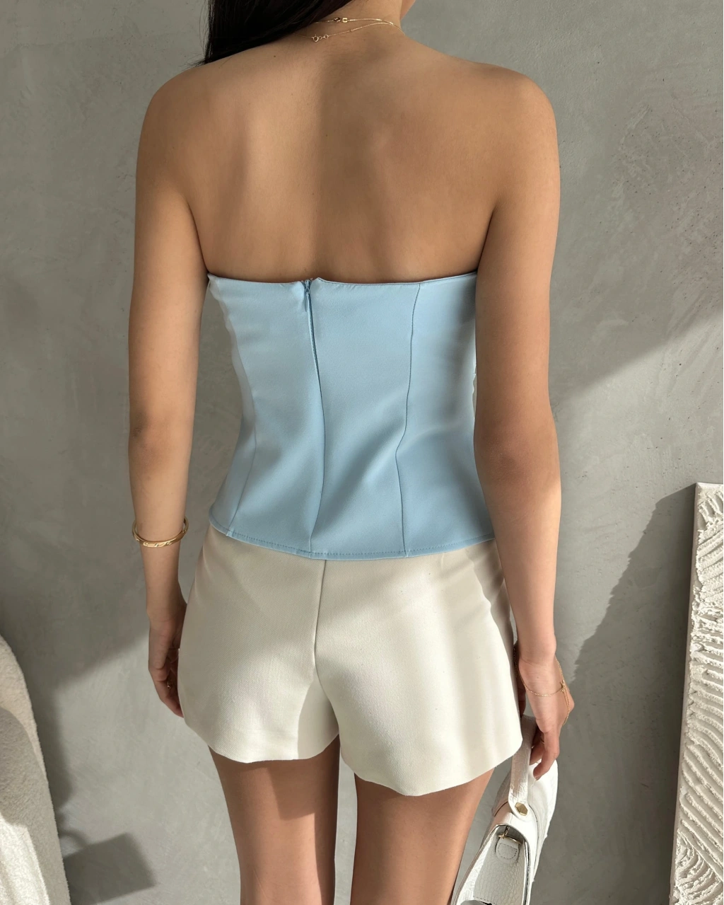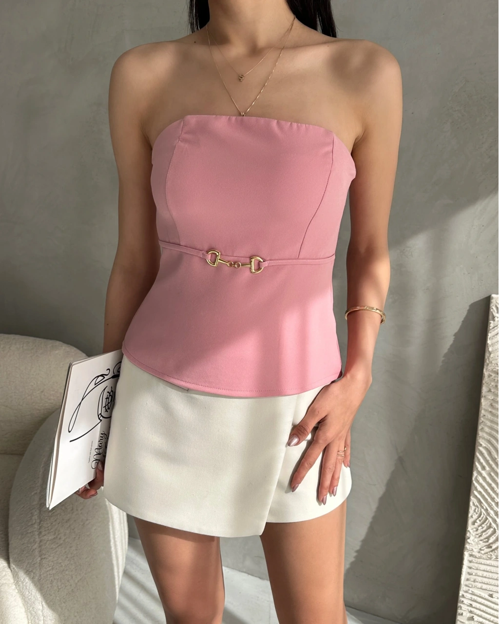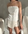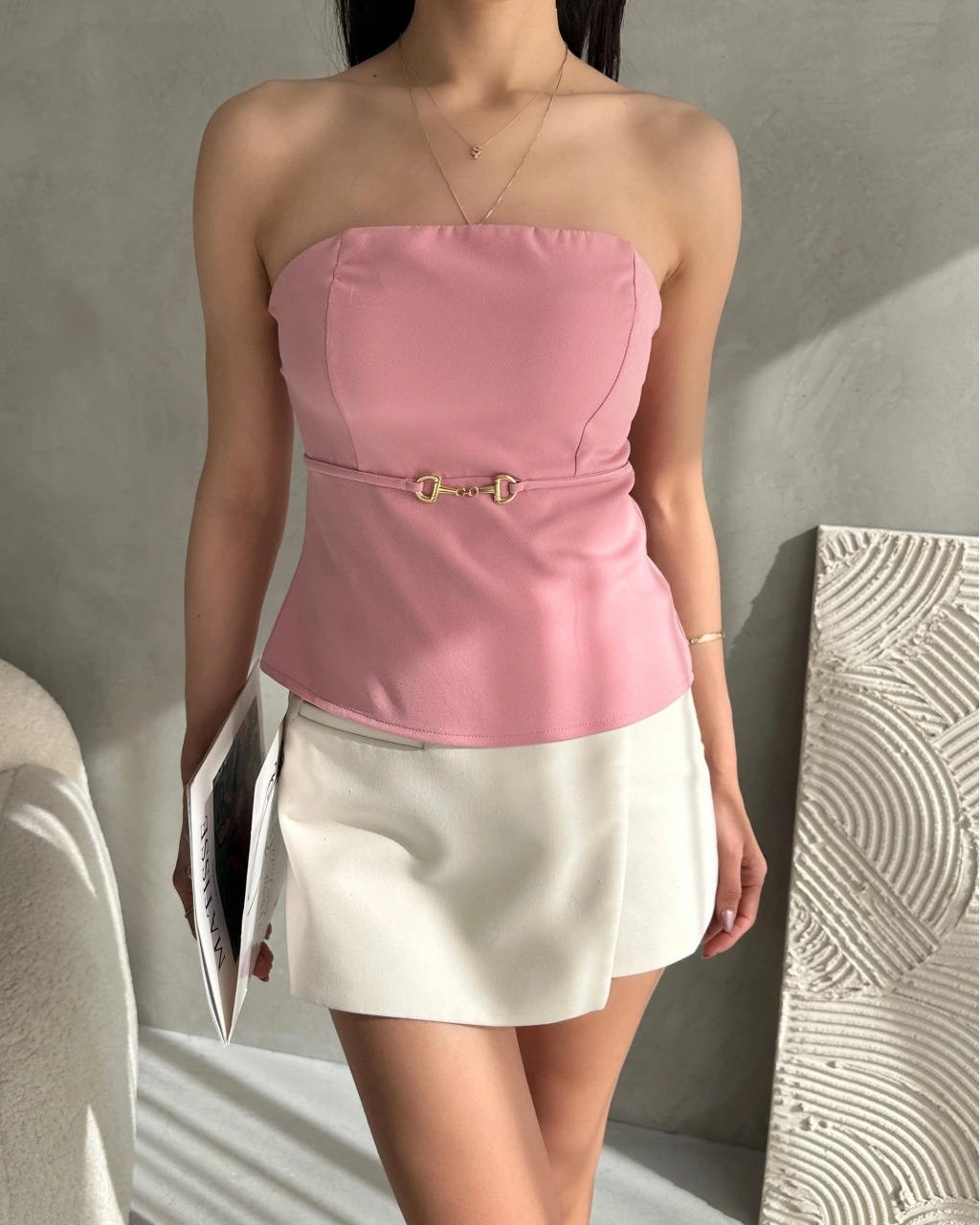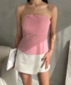 Ürün Adı :Straplez Beli Toka Detaylı Crep Bluz