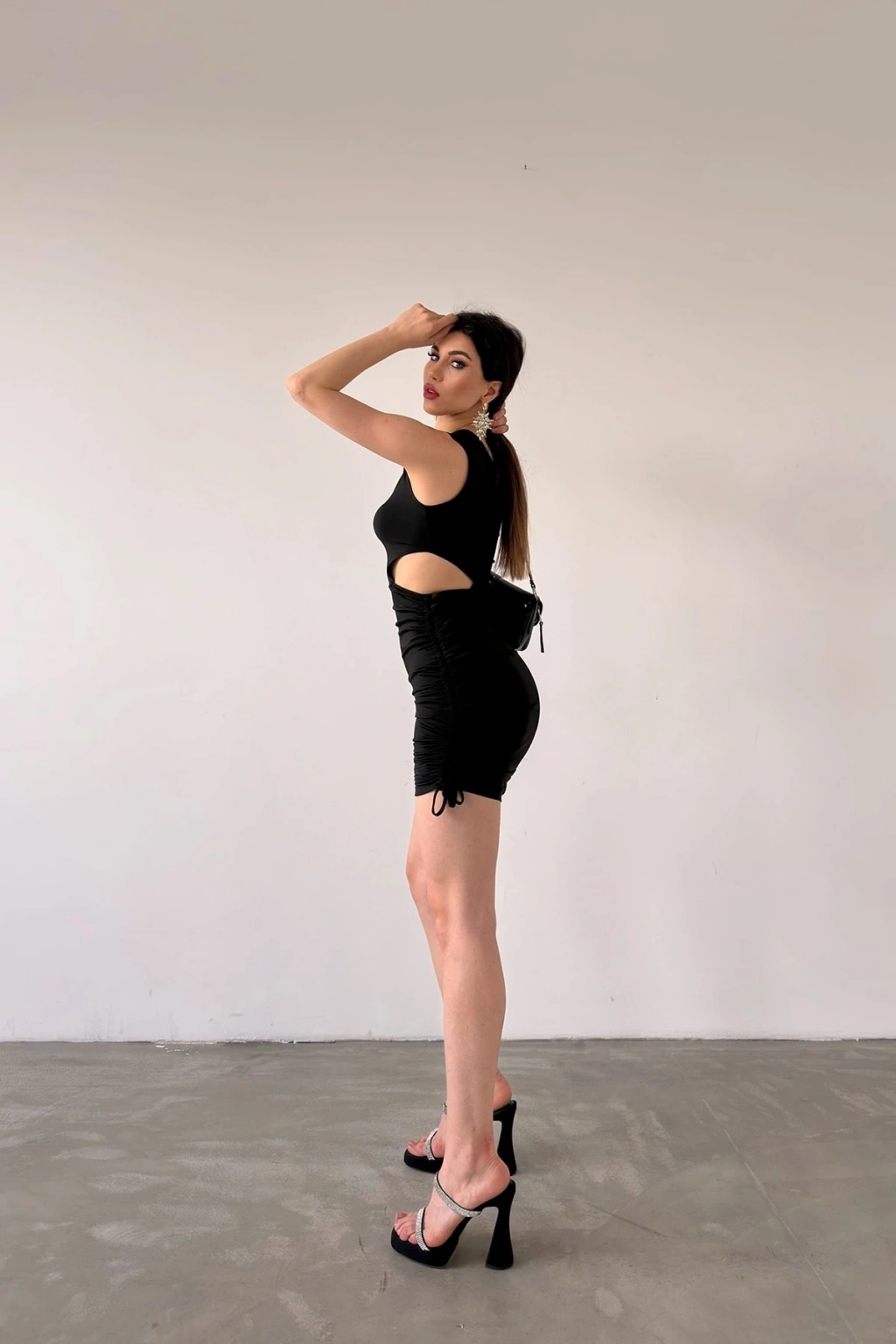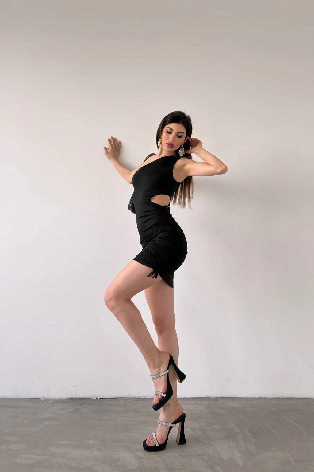 Ürün Adı :Tek Omuz Beli Dekolteli Büzgü Detaylı Dalgıç Elbise