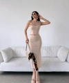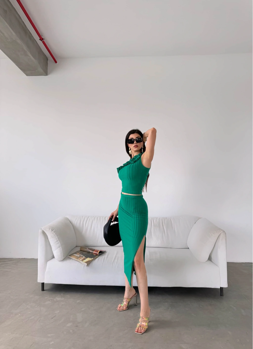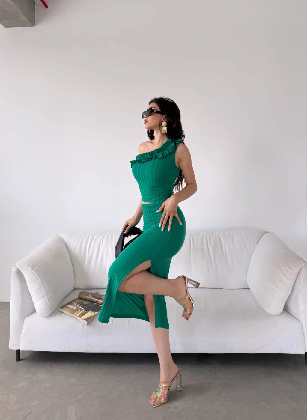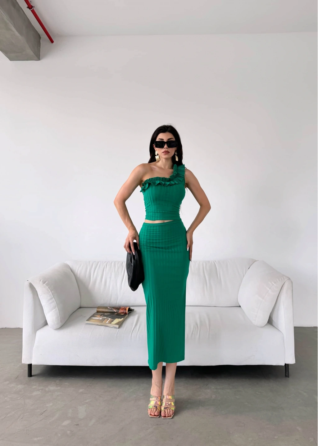 Ürün Adı :Tek Omuz Fırfır Detaylı Etek Ve Bluz Alt Üst Takım