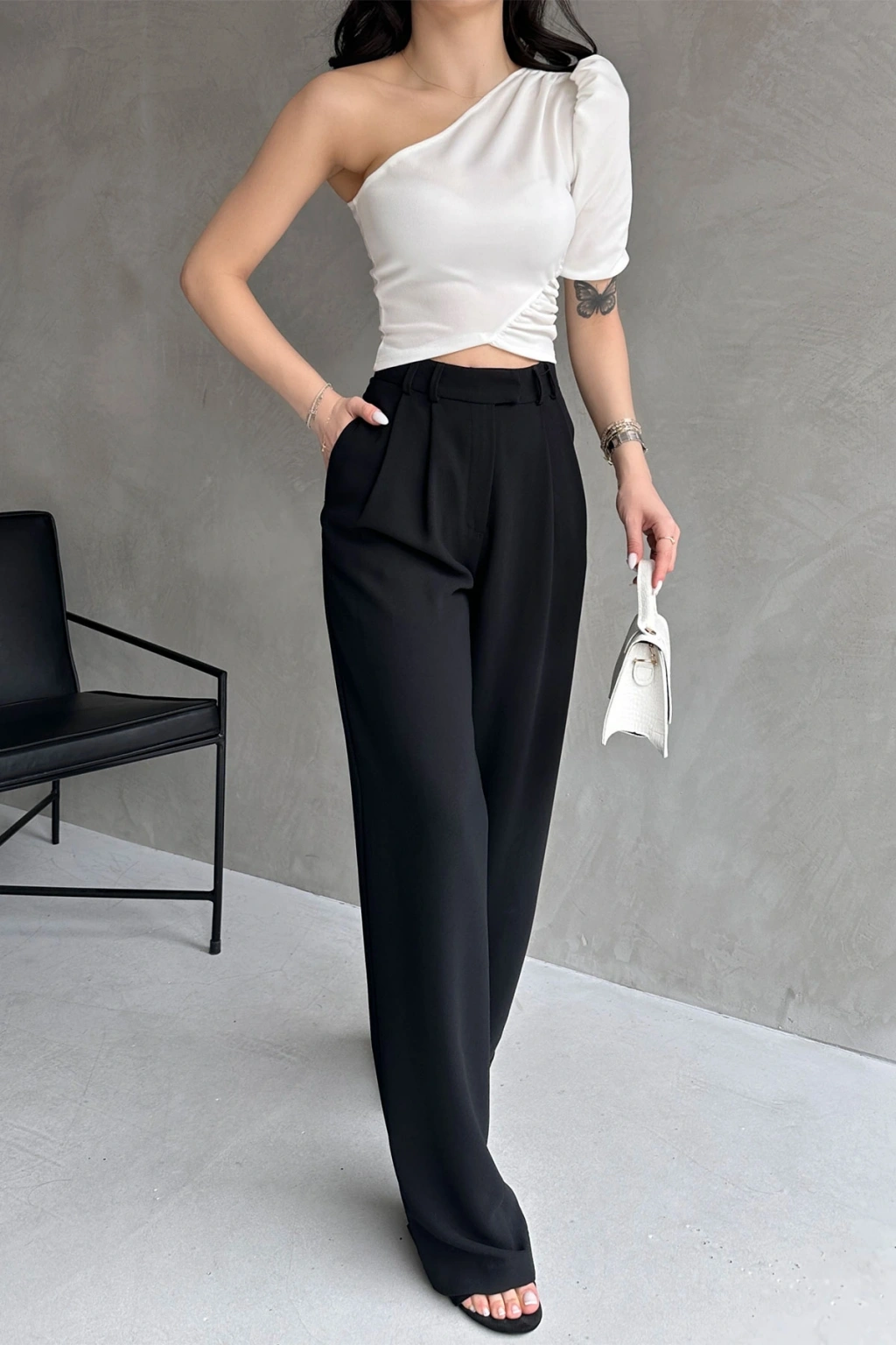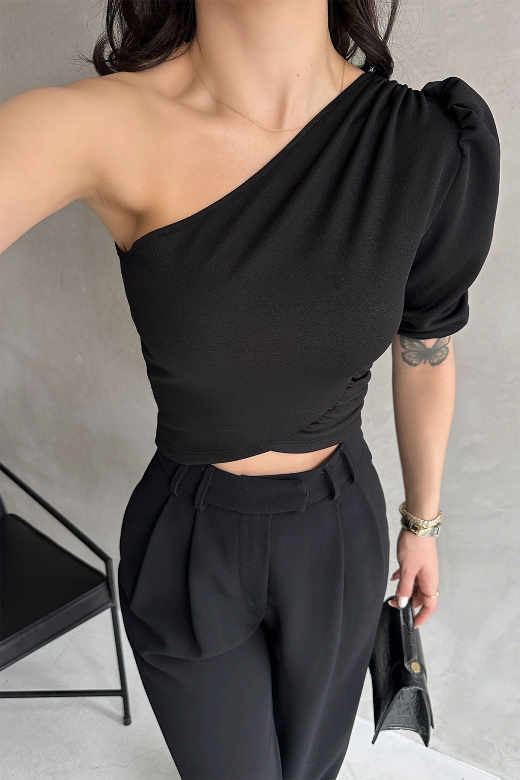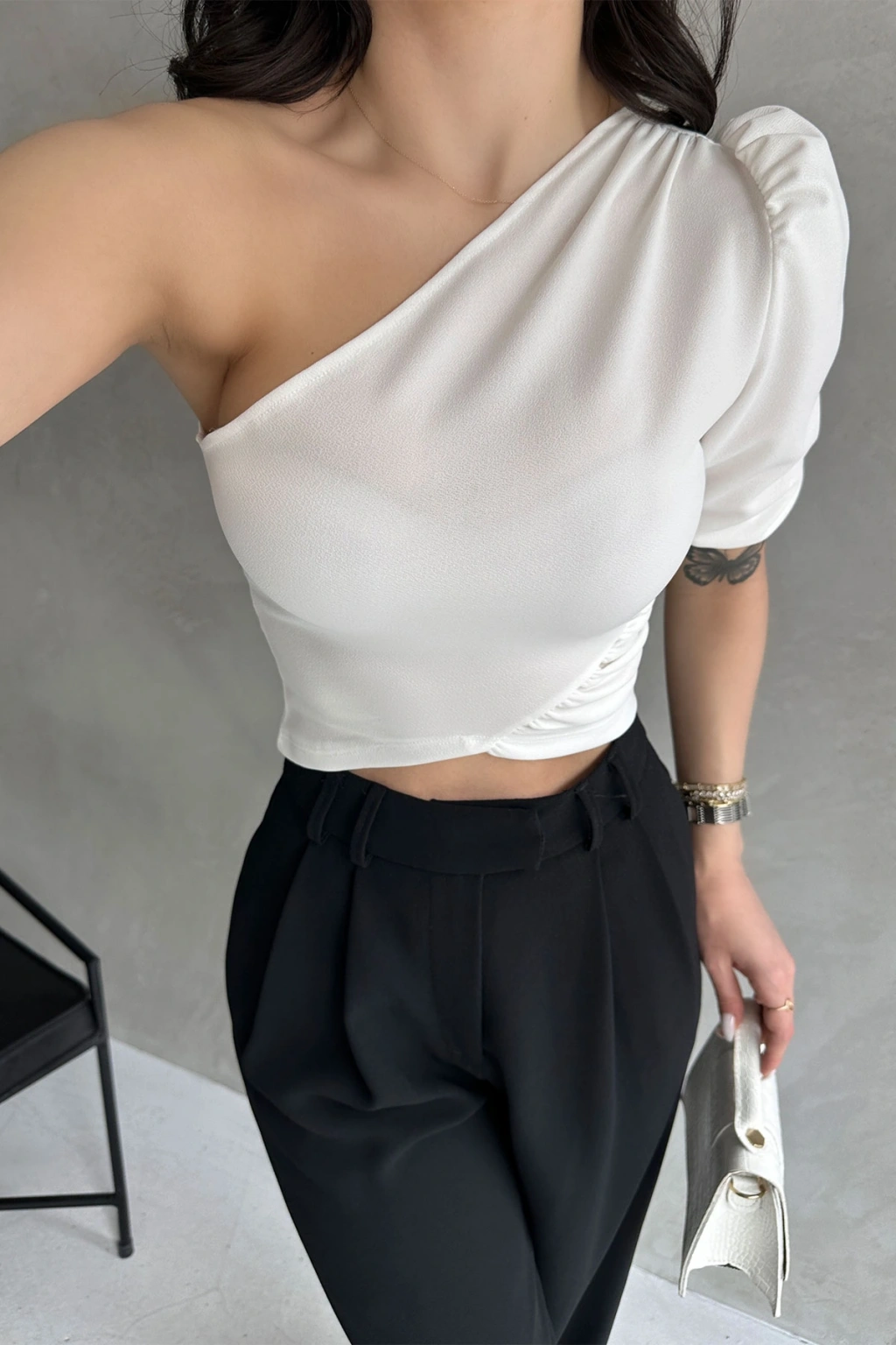 Ürün Adı :Tek Omuz Prenses Kol Crep Bluz