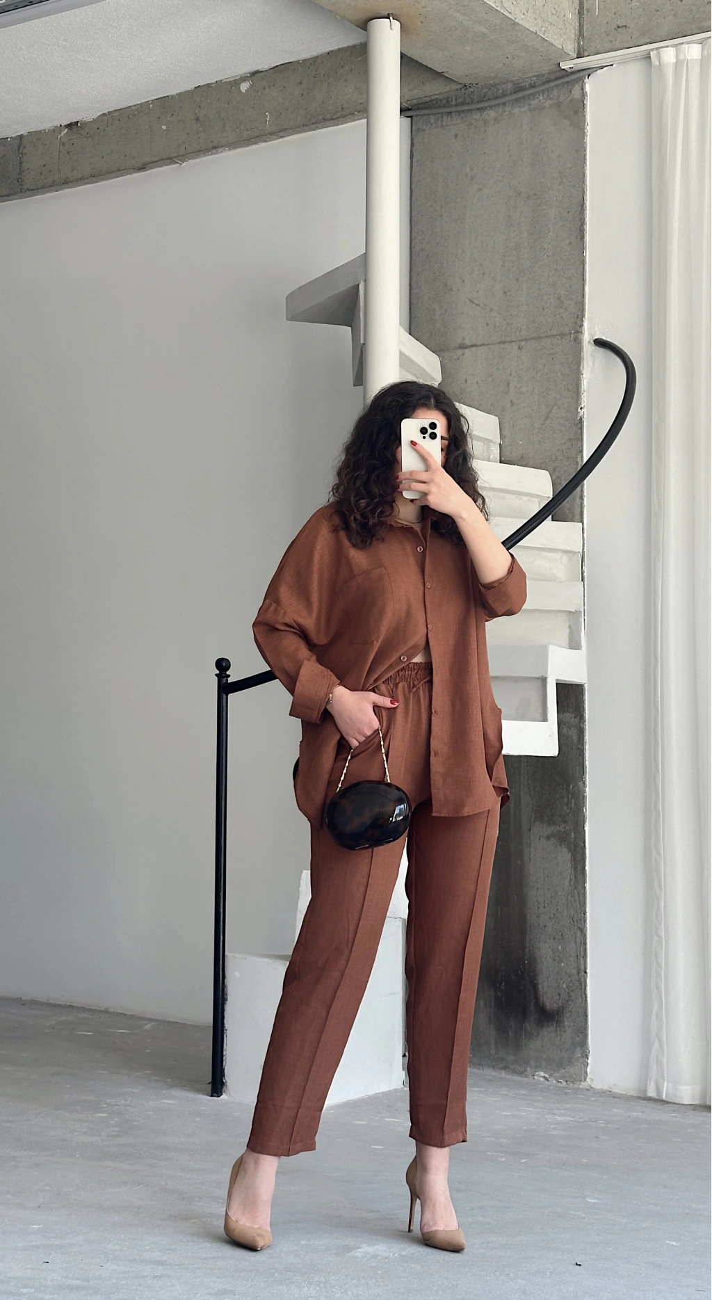 İkili Keten Gömlek Pantolon Alt Üst Takım, zarafeti ve konforu bir araya getirirken, stilinizi tamamlamanıza yardımcı olacak mükemmel bir seçenektir. Butakımı giyerek göz alıcı bir görünüm elde edin ve tarzınızı yansıtın.