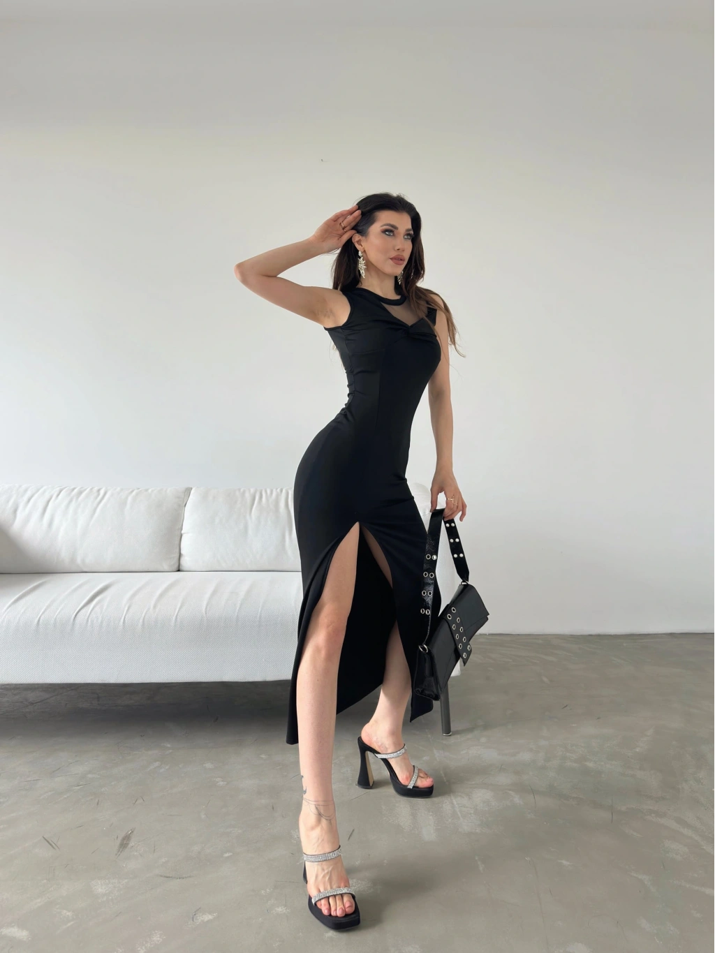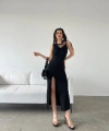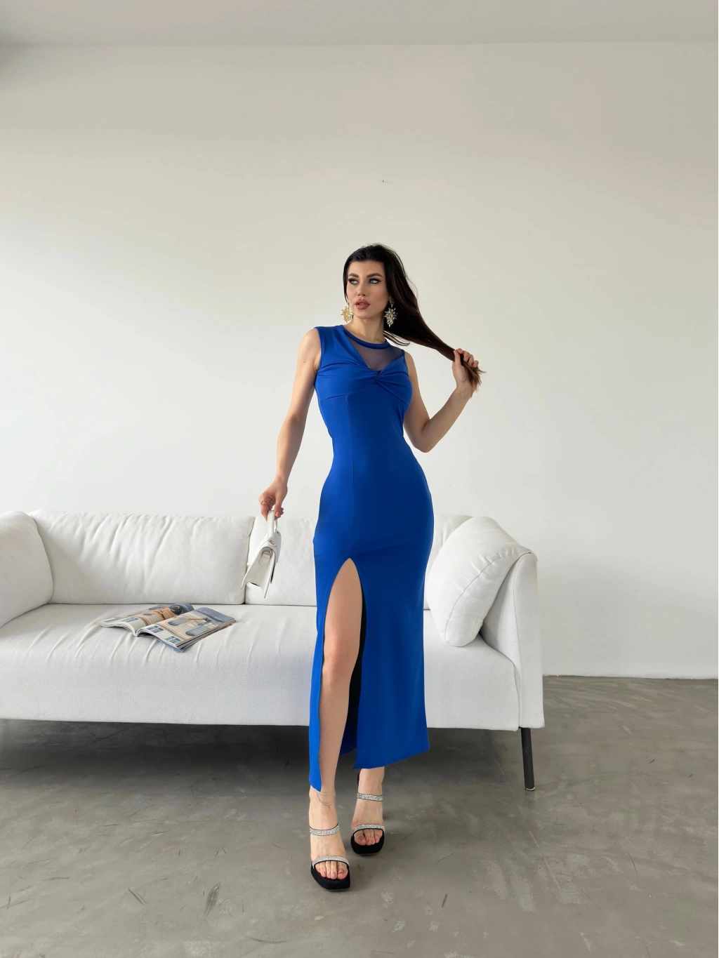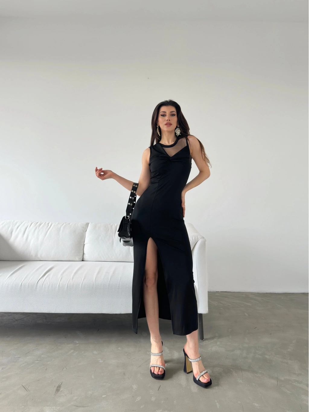 Ürün Adı :Tül Detaylı Derin Yırtmaçlı Elbise