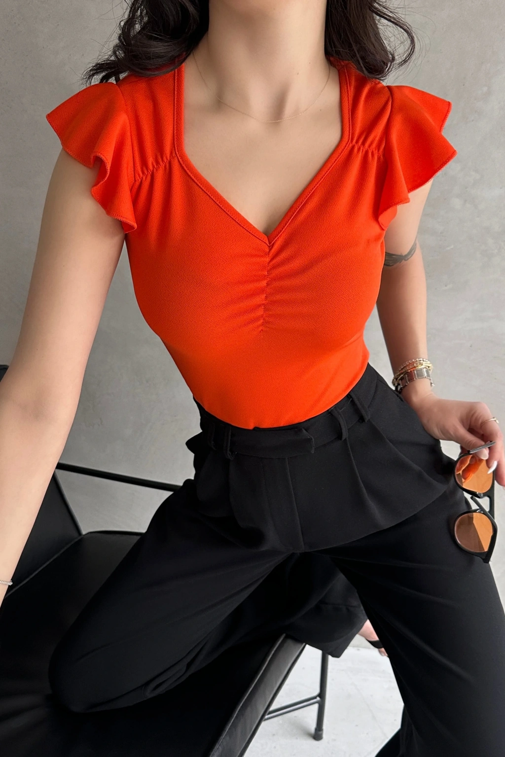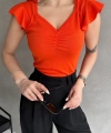 Ürün Adı :V Yaka Omuzu Volan Detaylı Crep Bluz