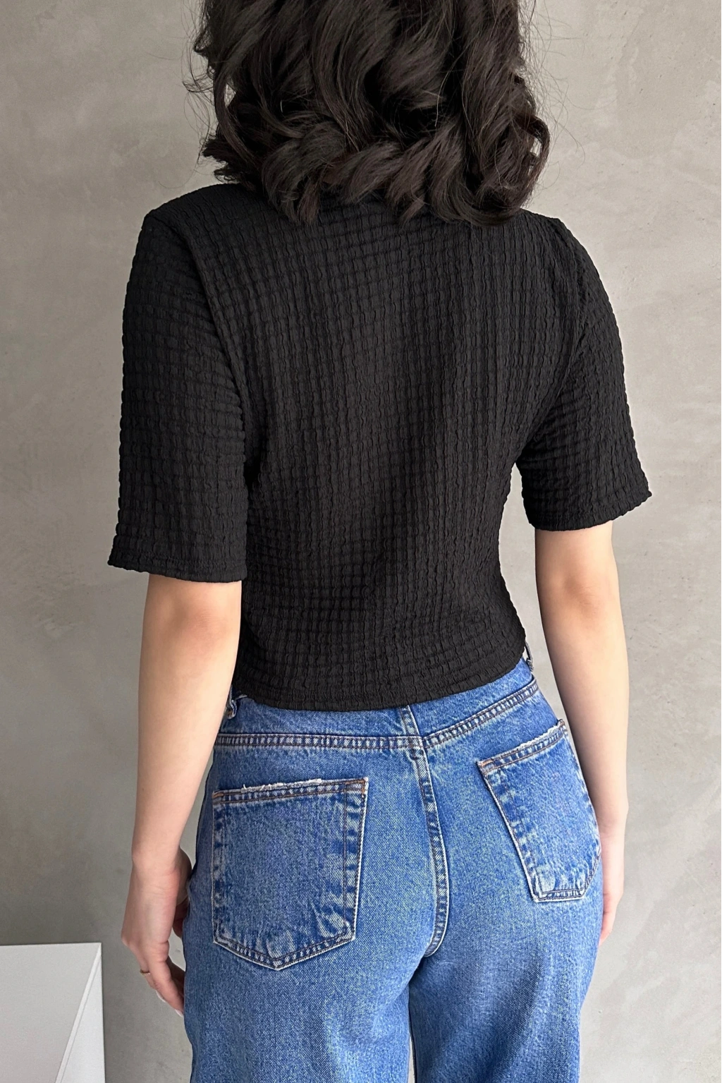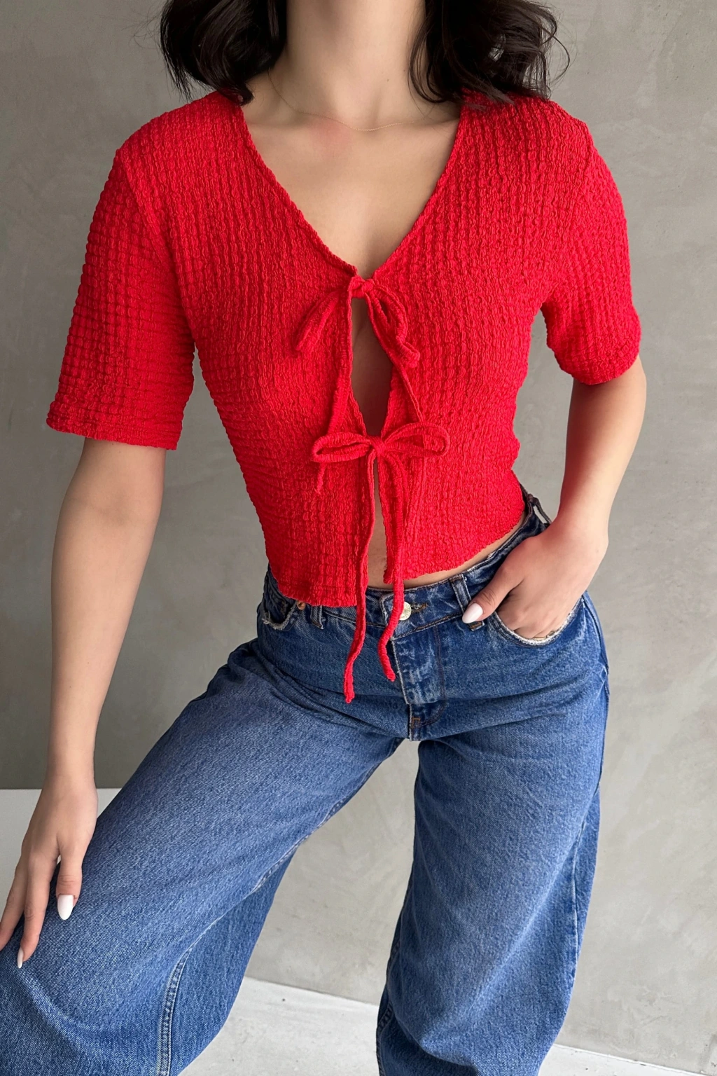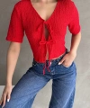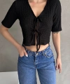Ürün Adı :V Yaka Önü Bağlamalı Gofre Crop Bluz
