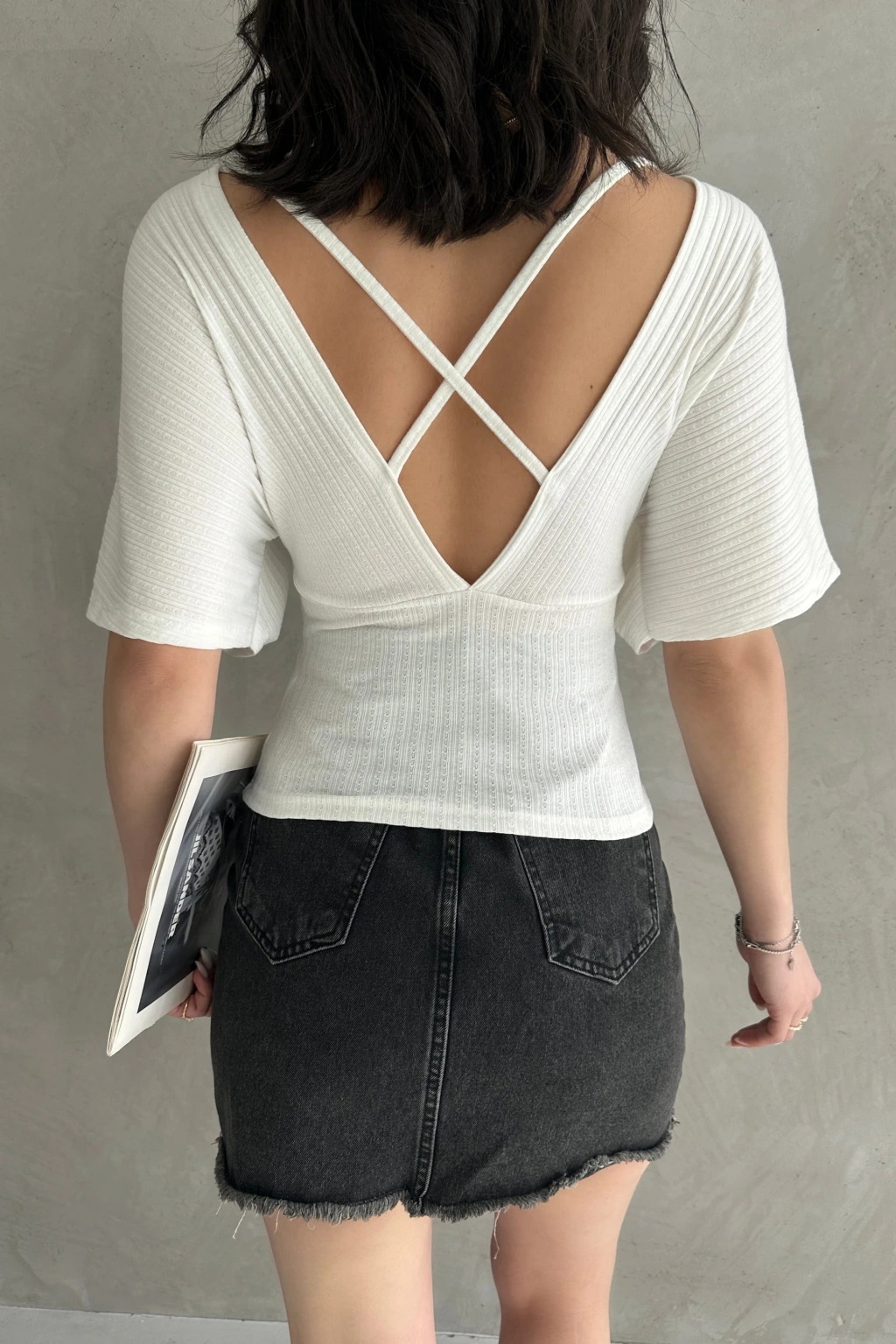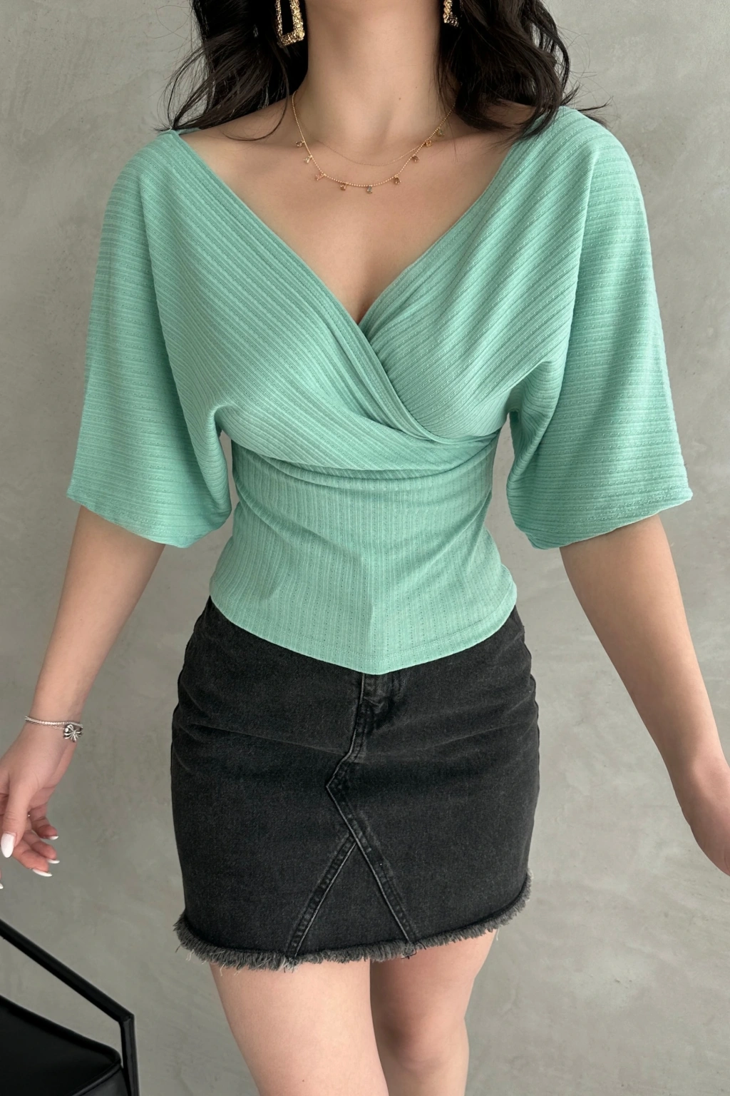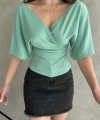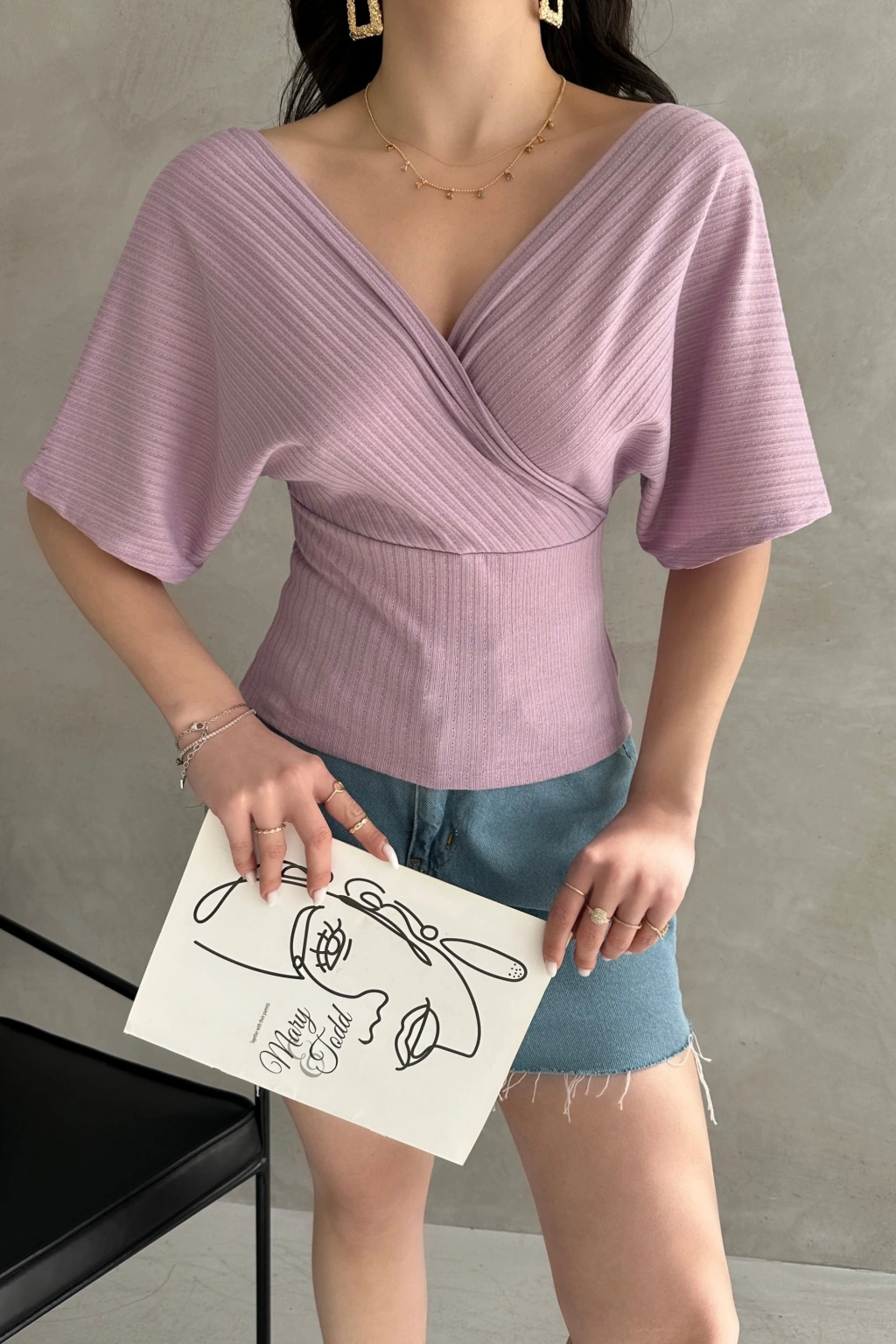 Ürün Adı :V Yaka Sırtı Çapraz Bantlı Fitilli Bluz