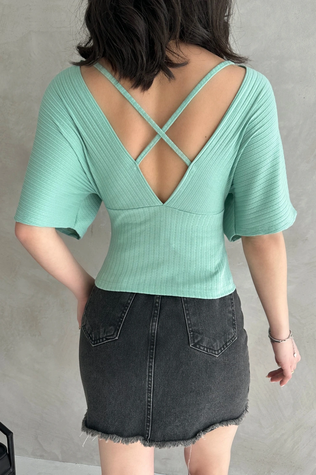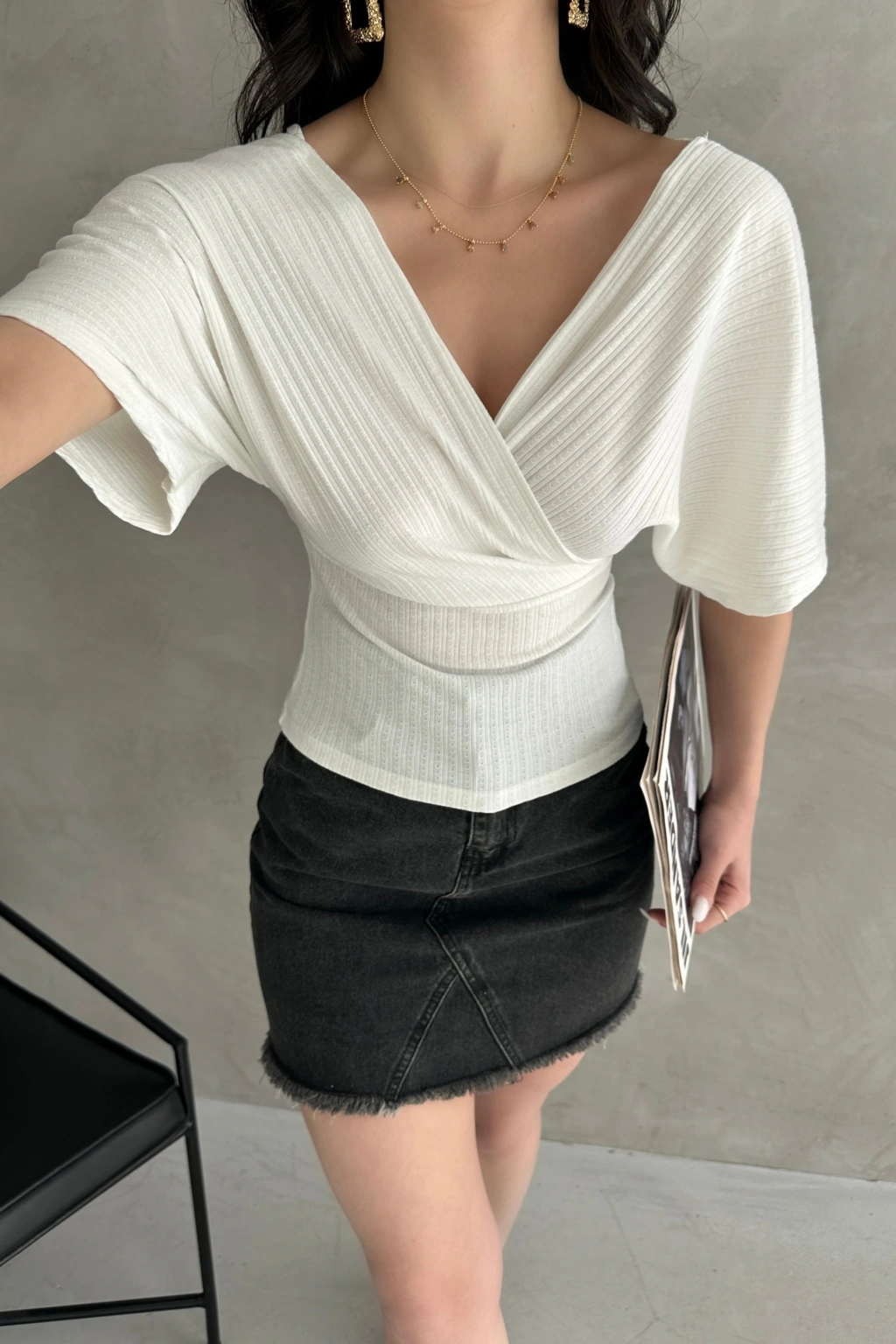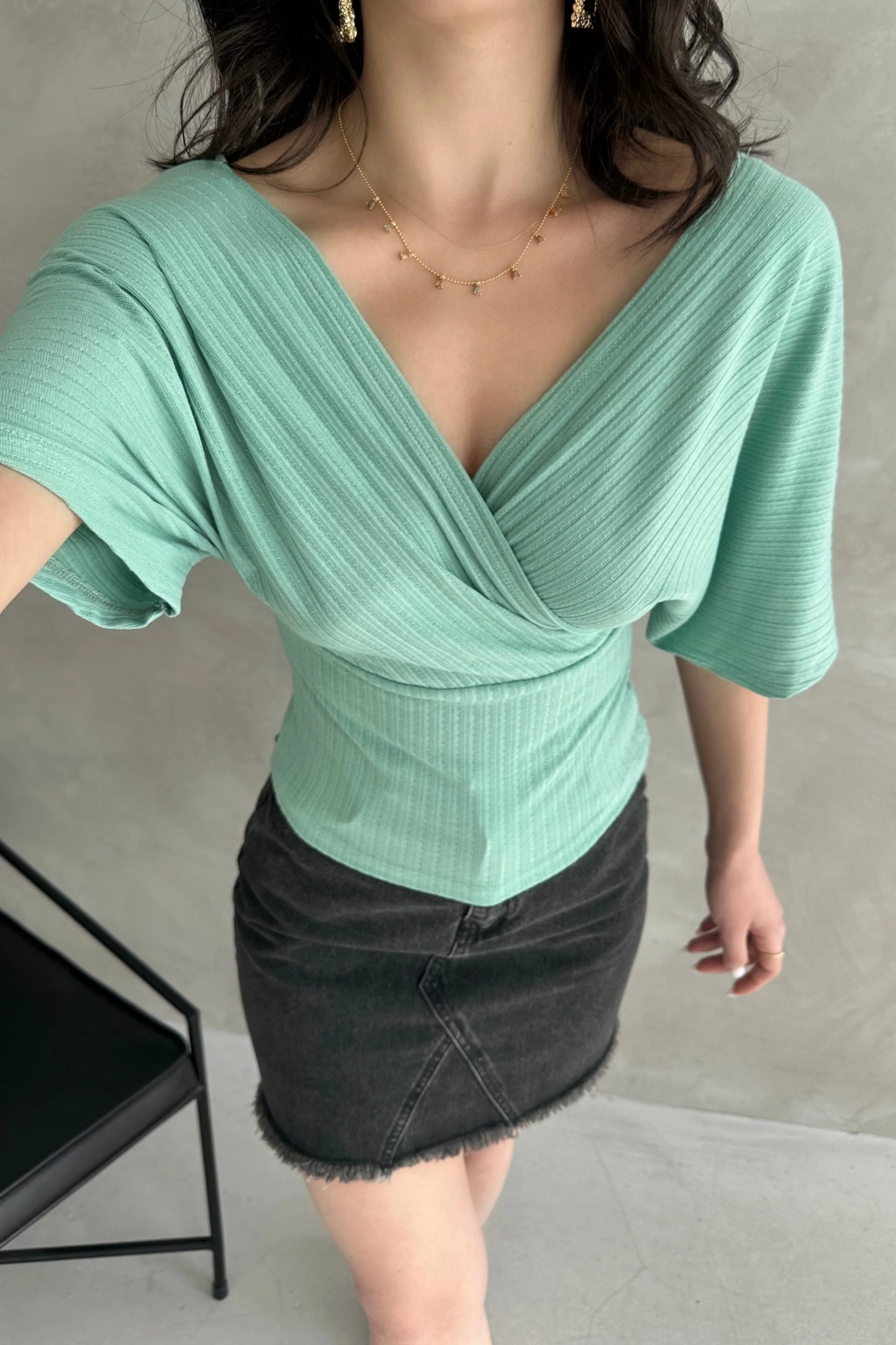 Ürün Adı :V Yaka Sırtı Çapraz Bantlı Fitilli Bluz
