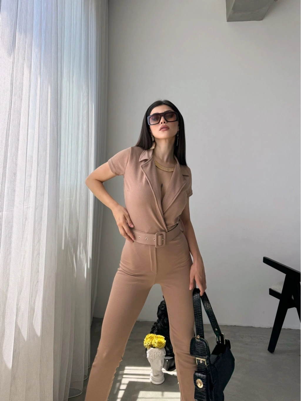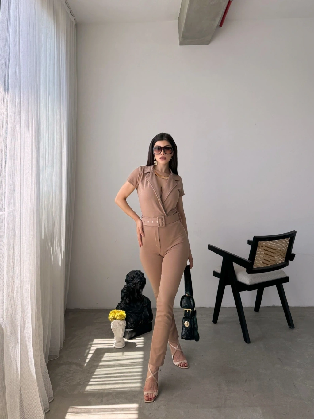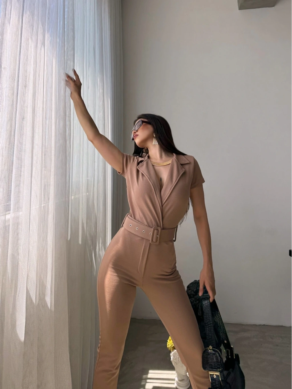 Ürün Adı :Yakalı Beli Kemerli Tulum