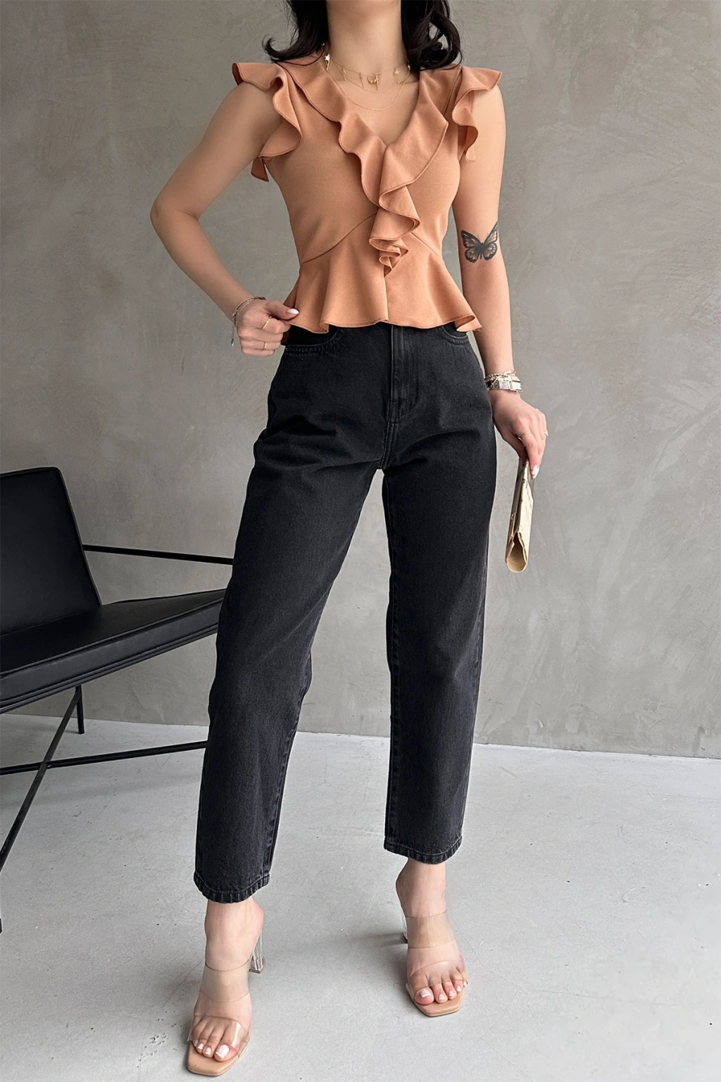 Ürün Adı :Yakası Ve Kolları Volanlı Crep Bluz