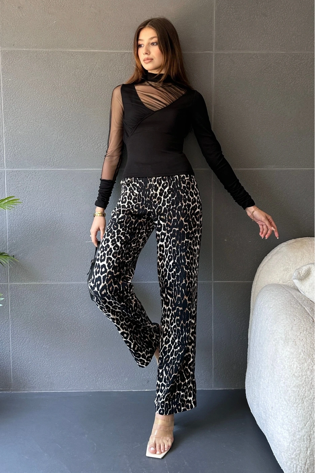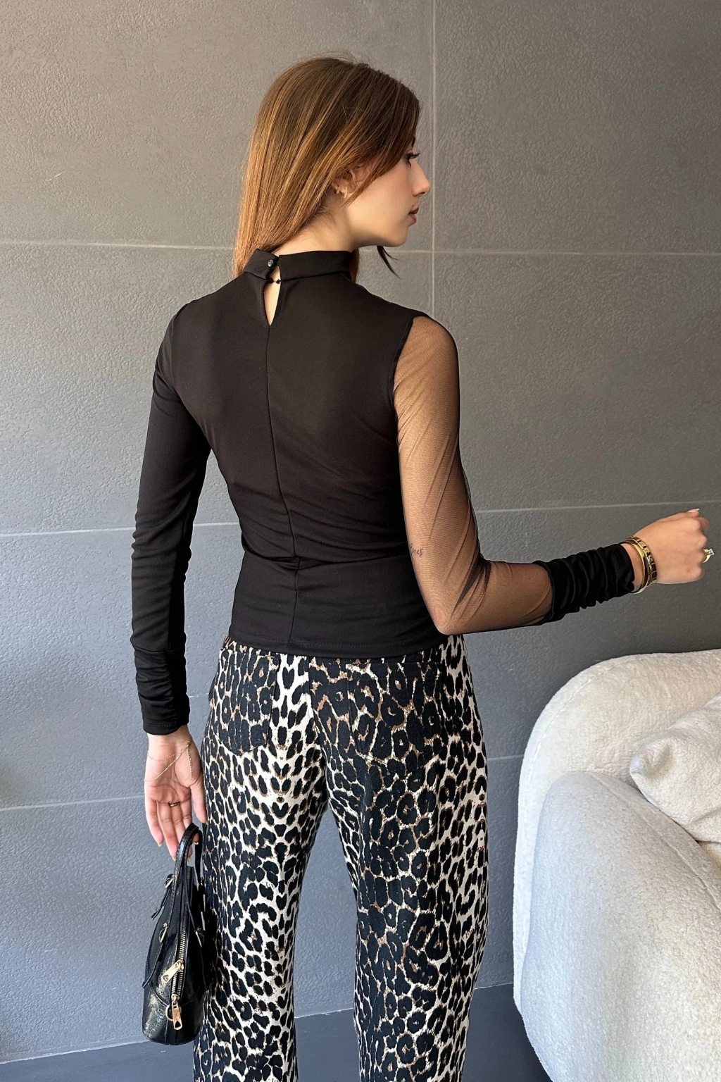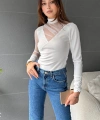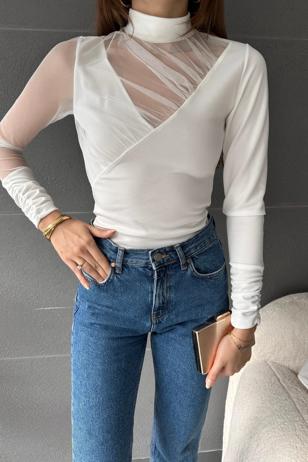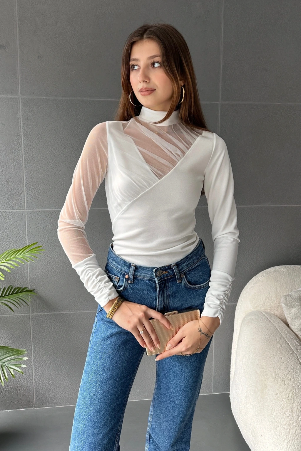 Ürün Adı :Yarım Balıkçı Tül Detaylı Bluz