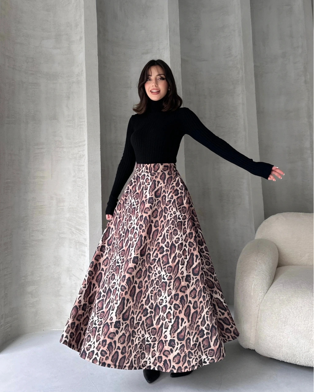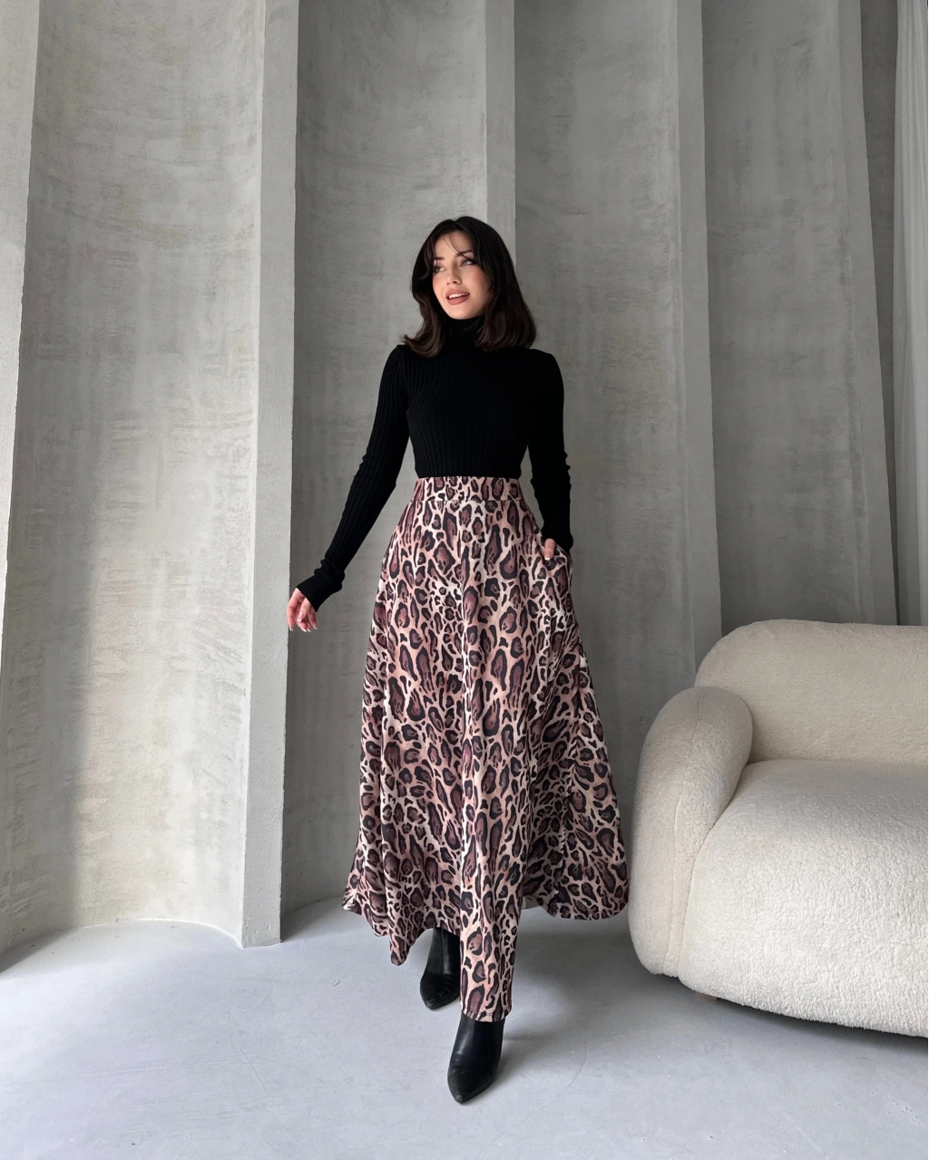 Ürün Adı :Yüksek Bel Leopar Desenli Çan Etek