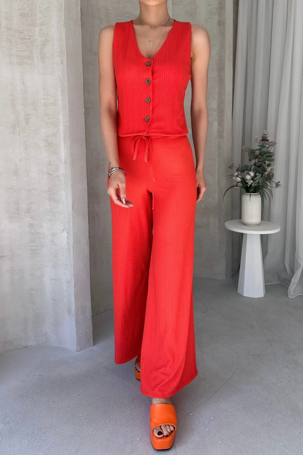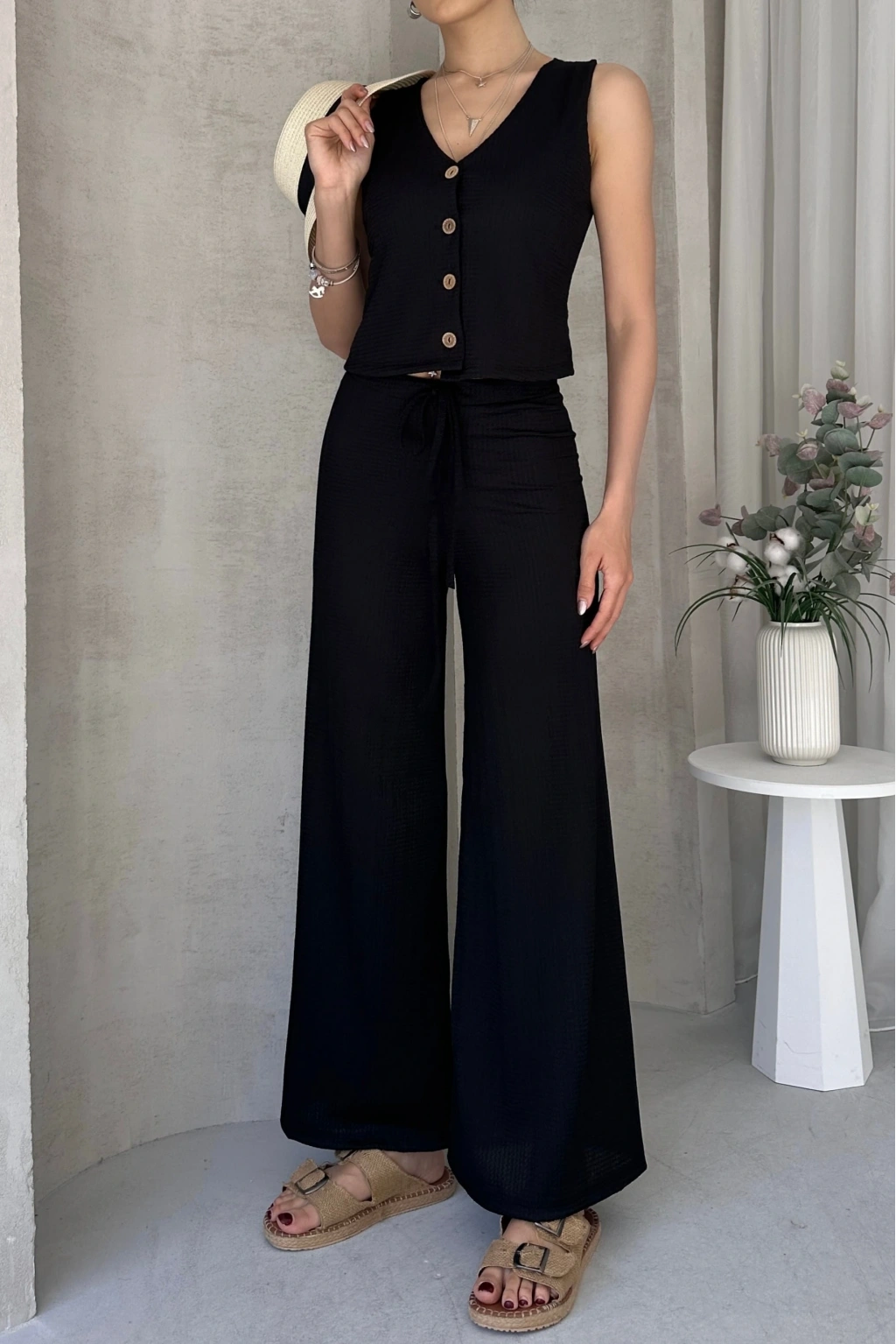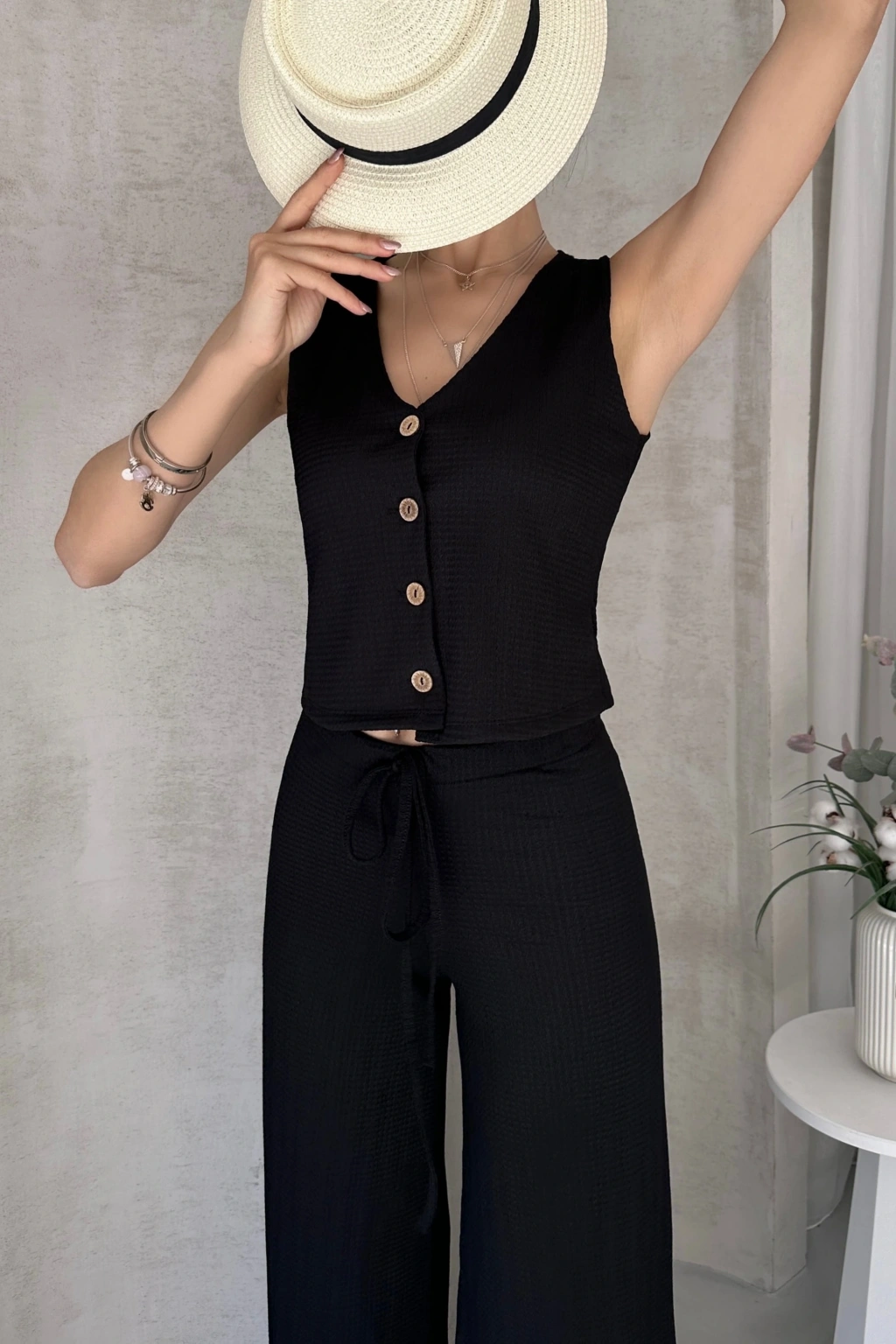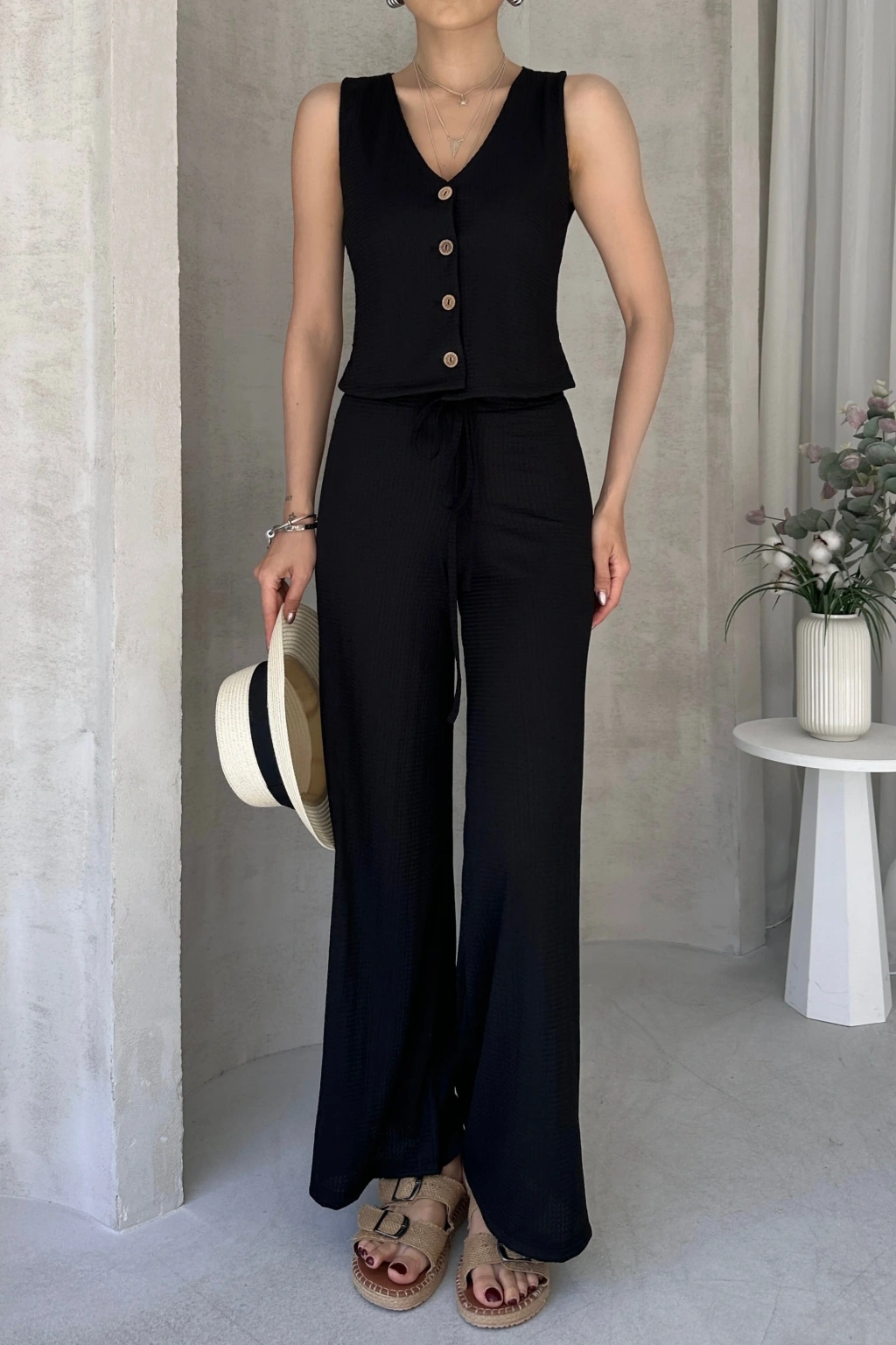 Ürün Adı :Yüksek Bel Rahat Pantolonlu Kolsuz Yelekli